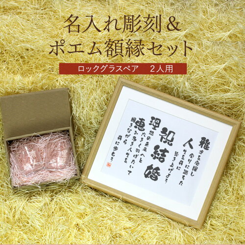 名入れ ロックグラス & 額縁(木製四切) 2人用セット ポエム 実用的 彫刻 ネームポエム 名前入り プレゼント ギフト 記念品 結婚 誕生日 父の日 引き出物 内祝い 成人祝い 還暦祝い 敬老の日祝い