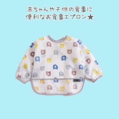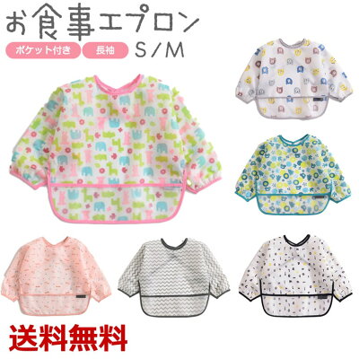 お食事エプロン 食事用エプロン エプロン スタイ よだれかけ ビブ 長袖 マジックテープ ポケット付き キッズ 子供 ベビー 赤ちゃん プレゼント 送料無料