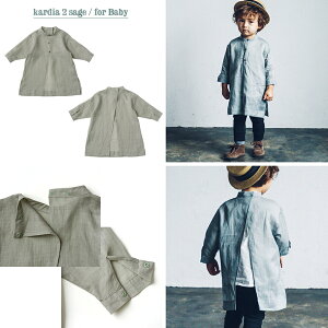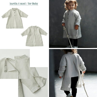 Apron kardiaシリーズ(キッズサイズ 100-110cm)はこちら 商品名 kardiaシリーズ(ベビーサイズ 80-90cm) 素材 麻100% 本体サイズ 着丈:500 mm、肩幅:300 mm、身幅:360 mm、裾幅:435 mm、袖丈:235 mm 推奨年齢 1〜3歳まで 価格 7,700円(税込) ※注意事項をご確認ください! 素材の特性上、お食事エプロンにはお名前刺繍は入れられません。