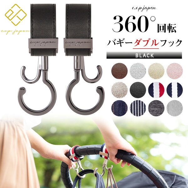360°回転するのでどの向きからも荷物が掛けられ、 ちょっとした買い物袋もかけられるダブルフック仕様。