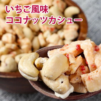 ヨーグルト風味に味付けしたココナッツにいちご顆粒をまぶして、ローストしたカシューナッツとブレンドしました。