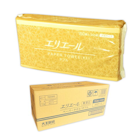 エリエール ペーパータオル 無漂白 ダブル 大判 150組 × 25パック 【大王製紙 業務用】【703320】