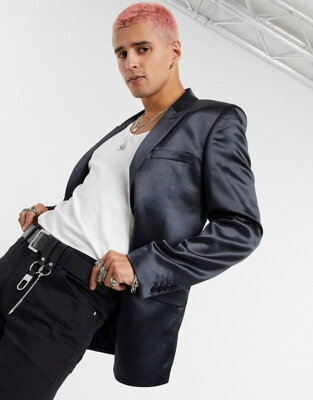 エイソス メンズ ジャケット・ブルゾン アウター ASOS DESIGN super skinny blazer in black high shine satin Black