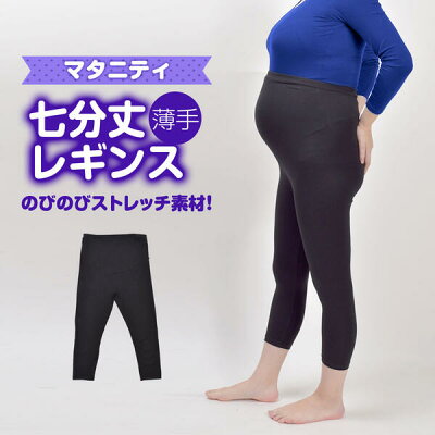 薄手マタニティパンツ/プレママ/ズボン/マタニティウェア/黒/伸縮性あり/シンプル/無地/やわらか生地/マタニティビスク/ヨガパンツ/ルームウェア/楽ちん/FP75207 レディース ストレッチ素材/7分丈/スキニー/ウエストゴム調節可 ブラック フリー 【楽ギフ_包装】