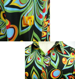 【メール便発送】【日本規格】ラウドマウス メンズ 長袖ポロシャツ (Shagadelic Black シャガデリック ブラック) 726502(020)【新品】 16FW Loudmouth 男性用 ゴルフウェア トップス 派手 派手な 柄 目立つ 個性的 %off