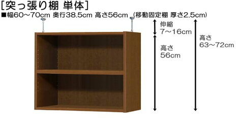 スペースにピッタリサイズでオーダー可能 オーダ突っ張り棚 厚棚板(厚さ2.5cm) 奥行38.5cm×高さ63〜72cm×幅60〜70cm 幅は1cm単位で指定 厚棚板(厚さ2.5cm) 奥行38.5cm 高さ63〜72cm 幅60〜70cm お客様組立て 低ホルムアルデヒド