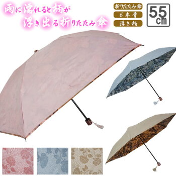 傘 雨傘 折りたたみ傘 雨に濡れるとバラ柄が浮き出る折り畳み傘 レディース 浮き柄 折り畳み 軽量 6本骨 3色 55cm