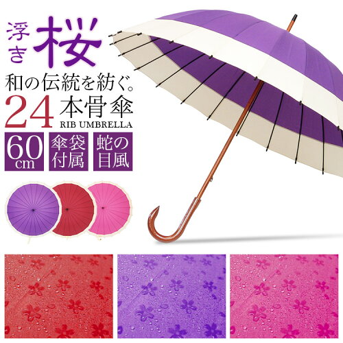 【60cm×24本骨】雨に濡れると桜柄が浮き出る蛇の目傘 専用傘袋付 和桜 和風傘 和傘 花柄 蛇の目傘 傘 レディース