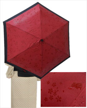 桜&うさぎ柄が浮き出る折り畳み日傘赤色(6本骨) 着物&洋服に 晴雨兼用
