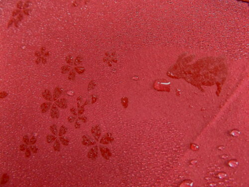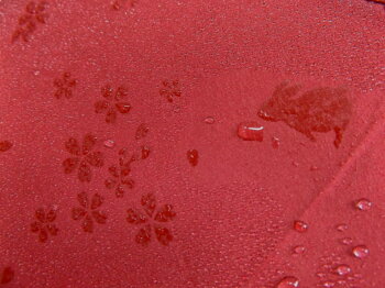 水滴が落ちても、水分が残る限り美しい桜&うさぎ柄は残ります。