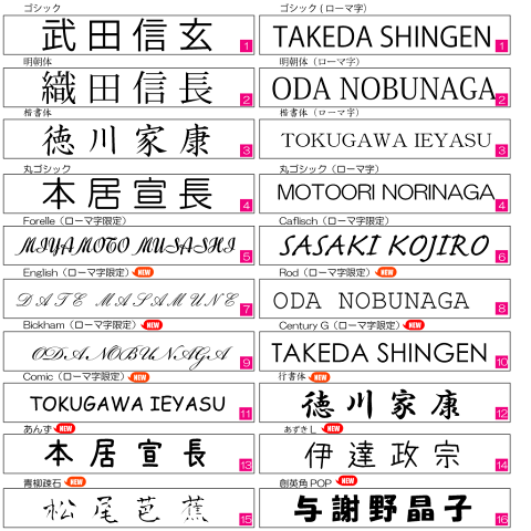 ■ 書体について 明朝体・行書・楷書・丸ゴシック・ポップ体など16種類から選べます。